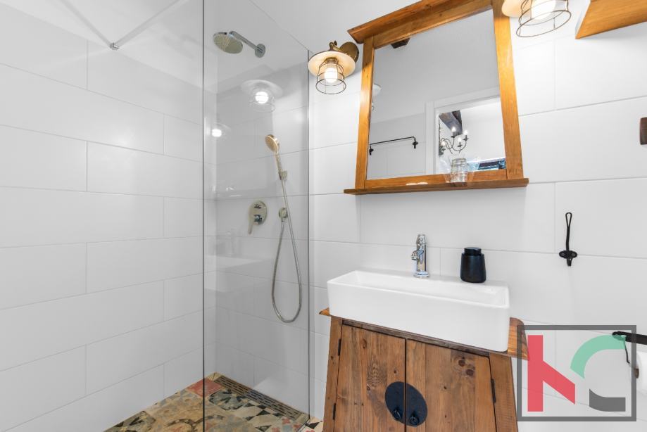 Dizajnirano i uređeno u istarskom stilu, sa novom fasadom, balkonom, zasebnim ulazima, dvorištem te stilski unutarnjim uređenjem, svaka se kuća proteže na dvije etaže od kojih poneke spavaće sobe imaju insuit kupaonice te se prodaju kompletno namještene.