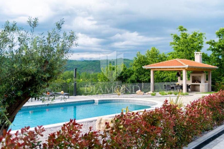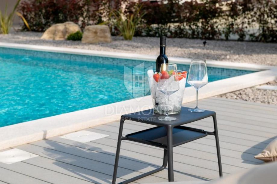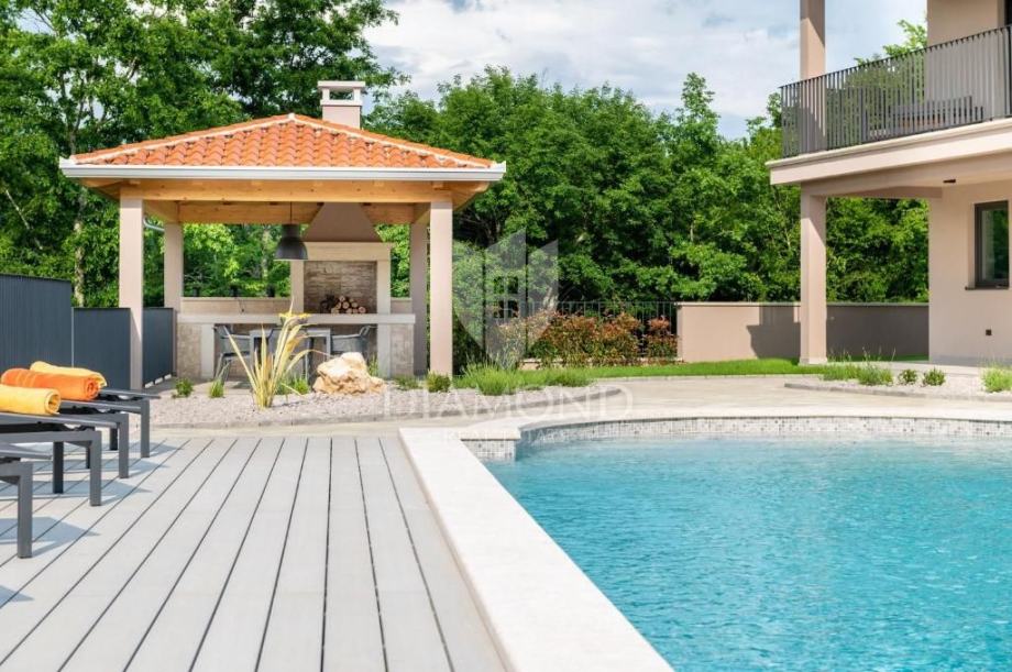 Na uređenoj okućnici smjestio se bazen, sunčalište, te ljetna kuhinja i natkrivena terasa, gdje se možete opustiti u toplim ljetnim mjesecima.