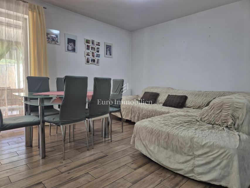 Sastoji se od ulaza, hodnika, 2 spavaće sobe, dnevnog boravka, blagovaonice i kuhinje, spremišta, kupaonice i nenatkrivene terase.