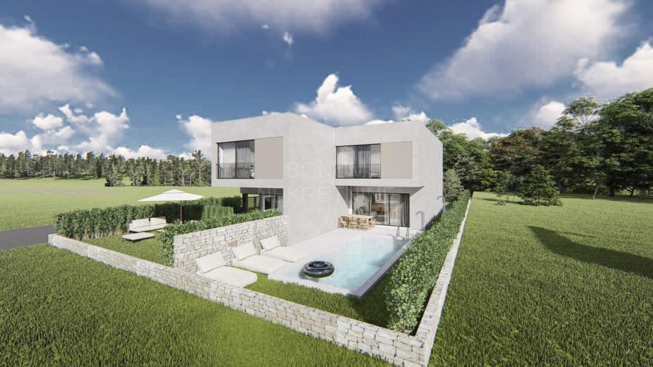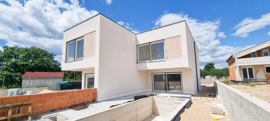 Kuća je u fazi izgradnje, modernog je dizajna te ima odličan raspored prostorija.