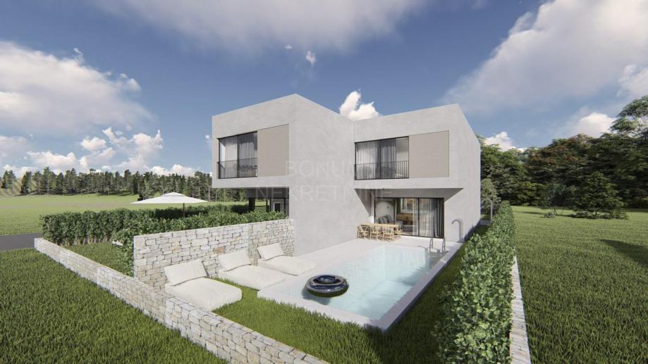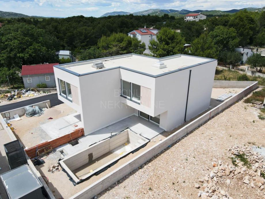 Kuća je u fazi izgradnje, modernog je dizajna te ima odličan raspored prostorija.