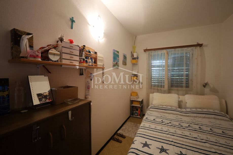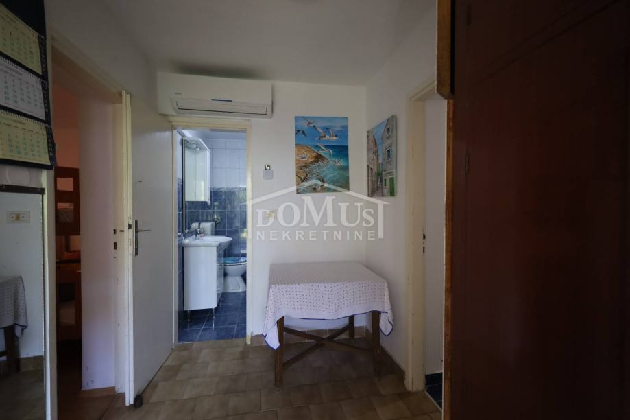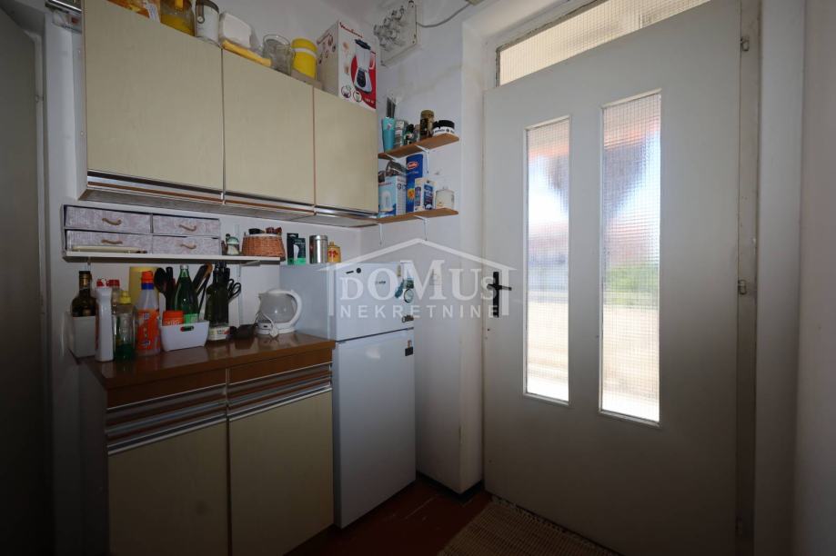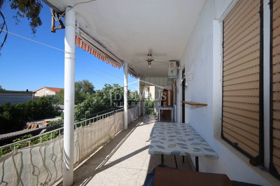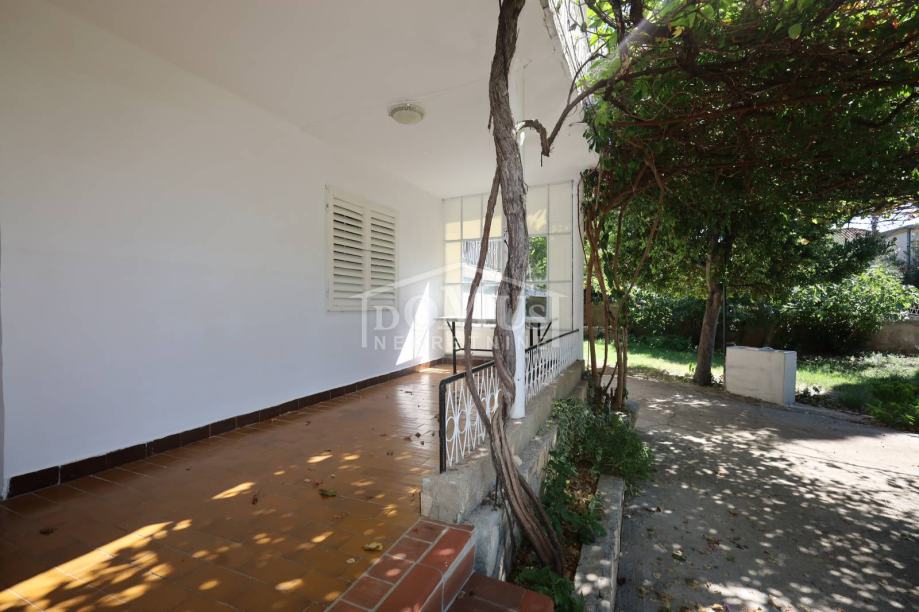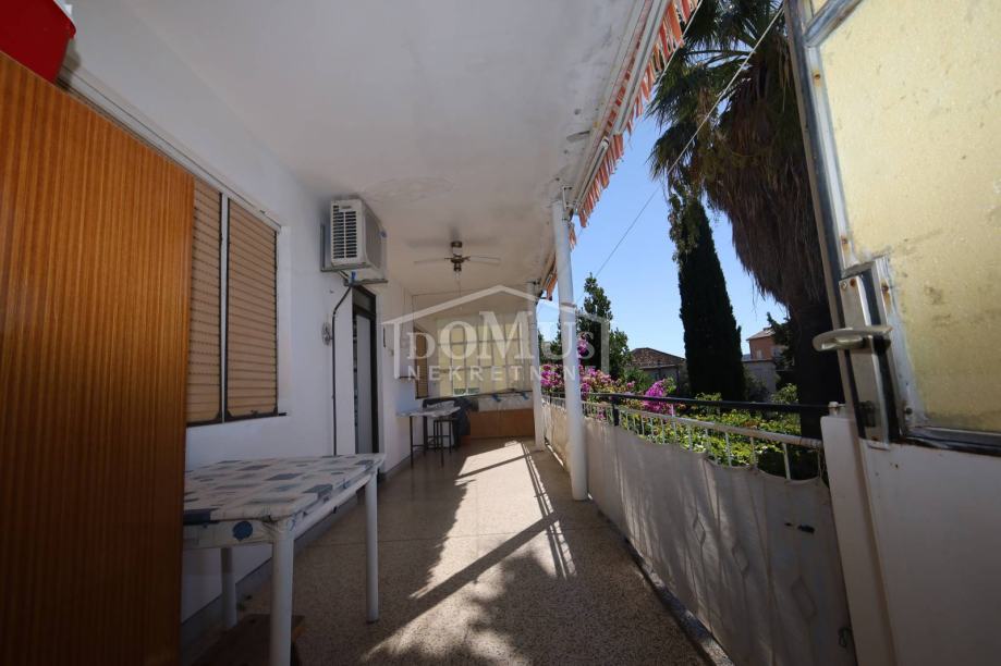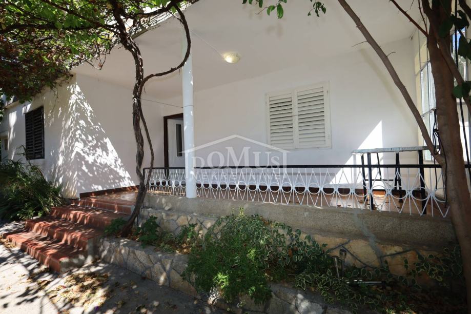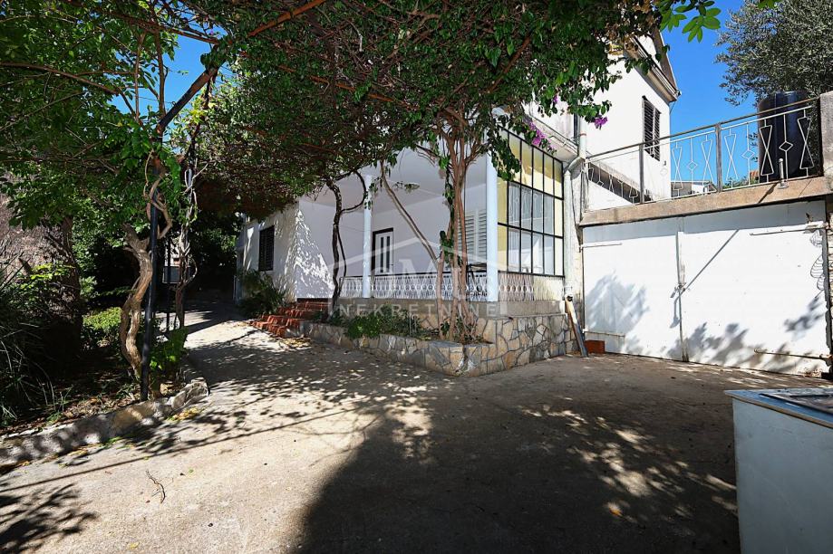 Pirovac, na atraktivnoj lokaciji nalazi se obiteljska kuća površ. 113,51 m2. Sastoji se od prizemlja i 1. kata, kao dvije zasebne stambene jedinice, s vrtom. U prizemlju se nalazi namješten stan površ. 66,32 m2, koji se sastoji od ulaznog prostora povezanog s velikom natkrivenom terasom površ. cca 11,oo m2, hodnika, kupaone, kuhinje s blagovaonom i dvije sobe. U prizemlju se nalazi još i garaža, te spremište. Vanjske stepenice vode na 1. kat na kojemu se nalazi stan površ. 47,19 m2 s velikom natkrivenom terasom cca 11,oo m2, na kojoj se nalazi ugrađena ljetna kuhinja, te hodnika, kupaone i četiri prostorije. Kuća je izgrađena 1968/69. godine i smještena je na parceli veličine 580,oo m2, a oko kuće se nalazi zelenilo i bujna vegetacija. Kuća nudi budućim vlasnicima miran i opuštajući ambijent, te je udaljena od plaže cca 200 m, a od centra mjesta cca 400 m. Kuća je odmah useljiva i prodaje se s namještajem i inventarom;