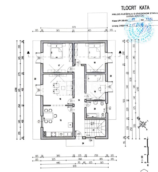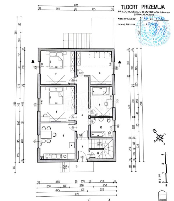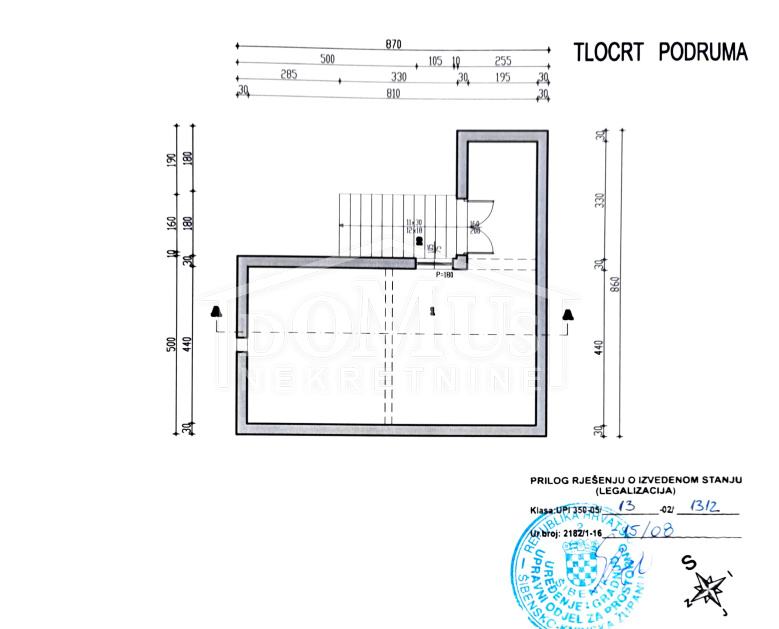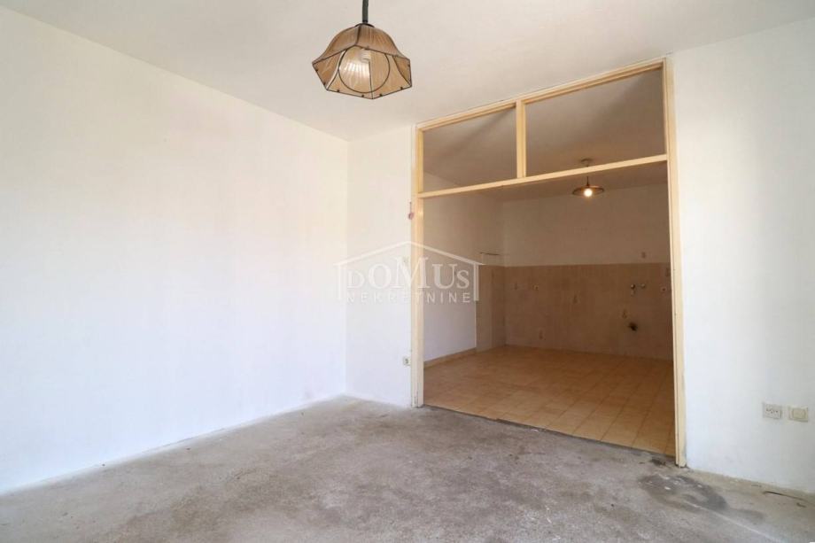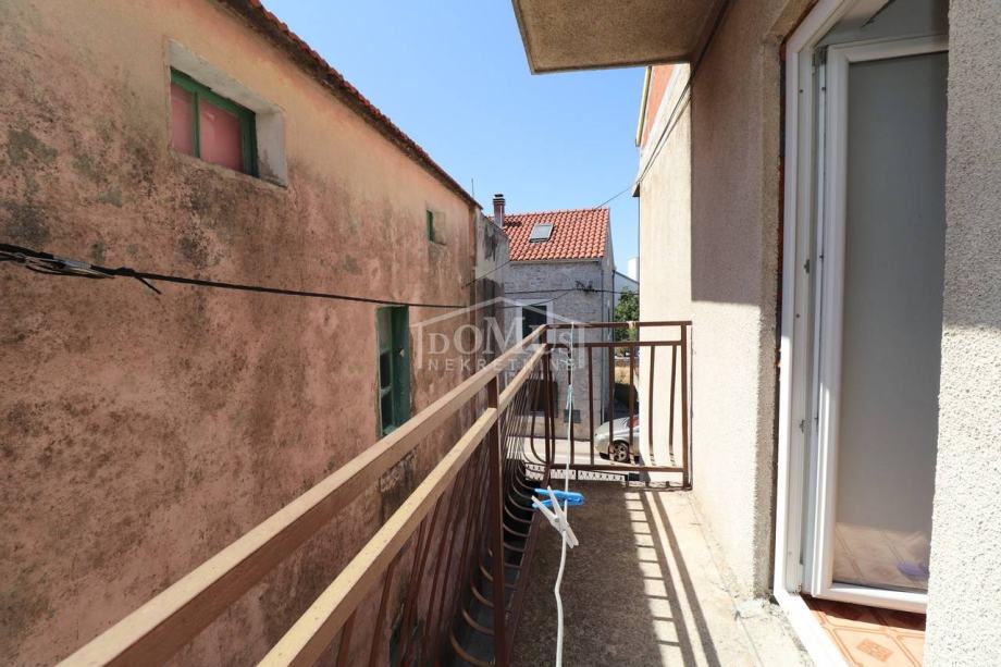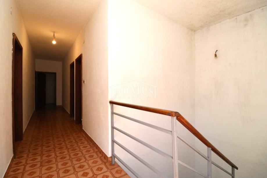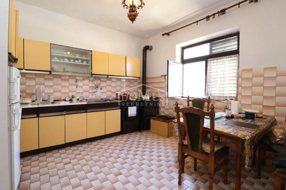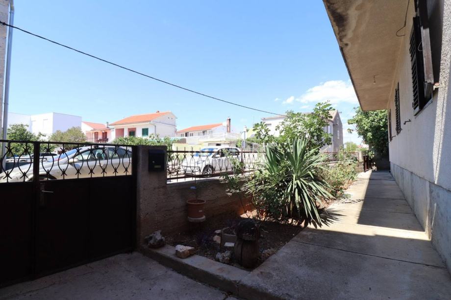 Pirovac, slobodnostojeća obiteljska kuća sa 208,26m2 korisne površine. Sastoji se od podruma, prizemlja i kata te ima dvije zasebne stambene jedinice i vrt. U prizemlju se nalazi namješten prostrani 4-sobni stan sa kuhinjom, kupaonom i spremištem. Unutarnje stepenice vode na kat gdje se nalazi nedovršen trosoban stan u visokoj roh-bau fazi sa dva velika balkona na koje izlaz imaju sve sobe i dnevni boravak, a tu je i još jedan manji balkon na jugozapadnom pročelju kuće. Kuća je građena 1970-ih godina, a drveno krovište je postavljeno 2009.g. Kuća je sagrađena na parceli od 378m2, ima prilaz sa dvije ulice, te veliko dvorište gdje je vrt koje je ograđeno sa parkirnim prostorom. U podrumu se nalazi veliko spremište. Kuća je udaljena od plaže samo 400m, a od centra mjesta 300m.