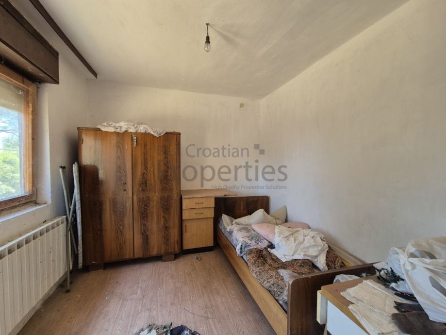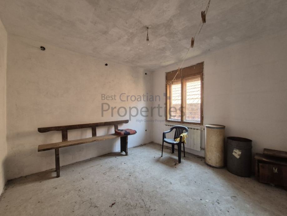 Na građevinskom djelu zemljišta nalazi se velika obiteljska kuća (potrbno kompletno uređenje, ili zamjenski objekt), te gospodarske zgrade.