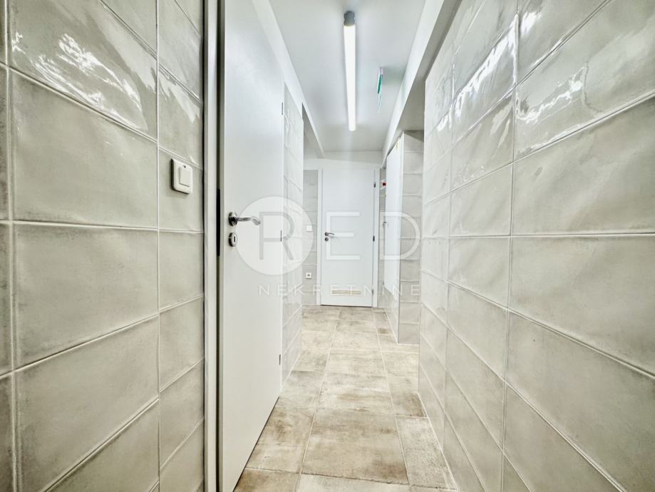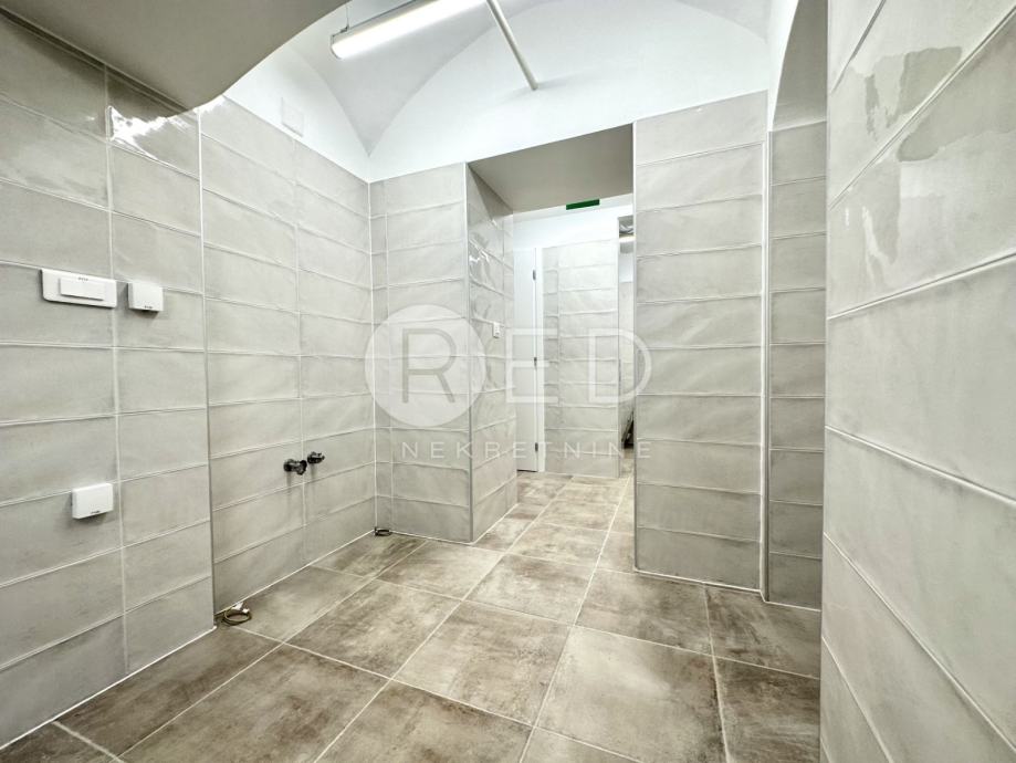 Poslovni prostor je kompletno adaptiran (kanalizacija, ventilacija, struja, voda, plin,telefon, stolarija, bojleri ...)