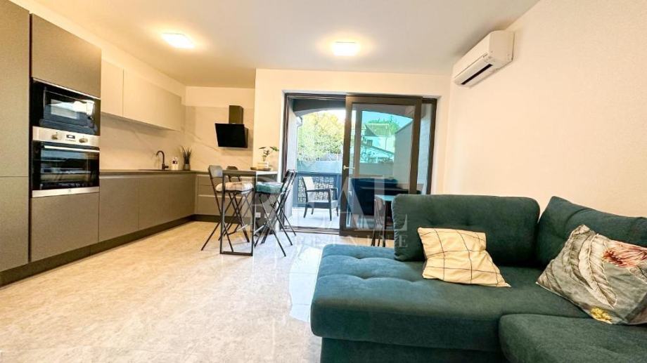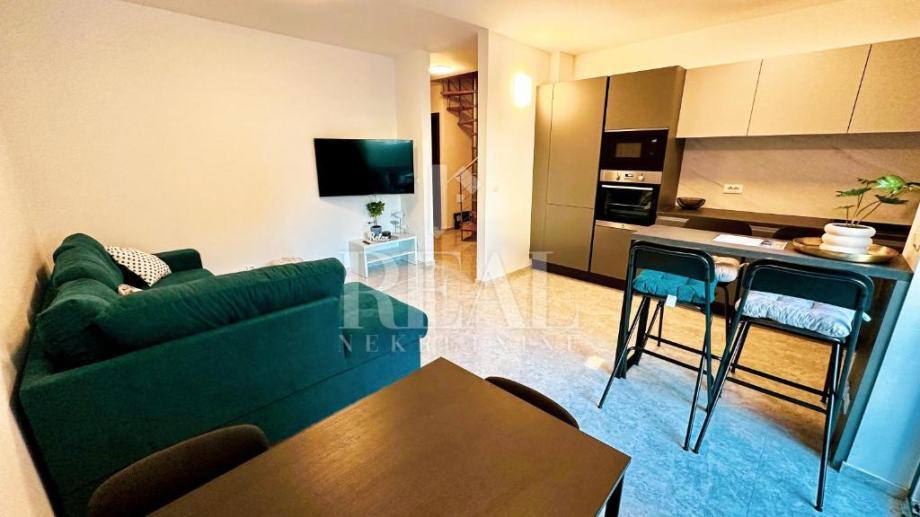 Pješčana uvala prodaja dvoetažnog stana koji se nalazi prvi red uz more.Stan je smješten na 2. katu stambene zgrade sa liftom.Na donjoj etaži su kuhinja sa blagovaonicom i dnevnim dijelom, kupaonica, hodnik, spavaća soba i natkrivena terasa a na gornjoj etaži su dvije spavaće soba i kupaonica.Kompletno je moderno opremljen i kao takav je na prodaju. Grijanje i hlađenje je na klima uređaj a kupatila imaju podno na struju. Stanu pripada spremište u prizemlju zgrade i vanjski parking.Uredna dokumentacija. Uređena plaža se nalazi odmah ispred zgrade.