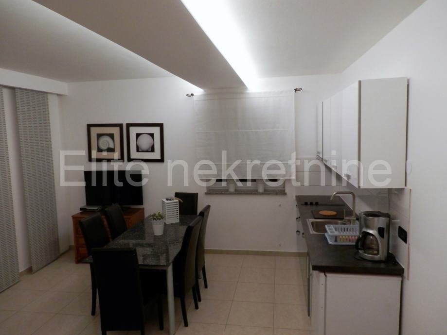 Ova apartmanska kuća se proteže na 4 etaže, suteren, prizemlje, 1 kat i mansardu. Sastoji se od 4 jednosobna apartmana, 2 studio apartmana te jednog prostranog dvosobnog apartmana. Svaki apartman ima terasu i parkirno mjesto. U kući se još nalaze: ostava, konoba, drvarnica, garaža, prostorija za recepciju te prostorija za pranje veša. Sa prvog kata i mansarde se pruža pogled na more.