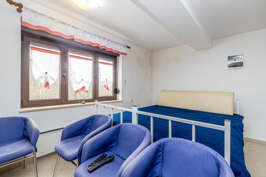 Prizemlje od 60 četvornih metara već je uređeno u stilu ugodne garsonijere, spremne za trenutno korištenje. Idealno je za obiteljski boravak ili početak turističkog najma. Prvi kat i visoko potkrovlje ostavljeni su u roh-bau fazi, što budućem vlasniku pruža slobodu prilagodbe prema vlastitim potrebama i viziji.