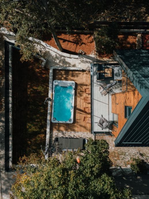 Vanjski prostor ove vile prava je oaza za uživanje. Prostrano dvorište sadrži sunčalište, grijani bazen s jacuzzi funkcijom te prostor za roštilj, savršen za okupljanja i stvaranje nezaboravnih uspomena. Grijani bazen omogućava relaksaciju tijekom cijele godine, čak i u hladnim zimskim danima.