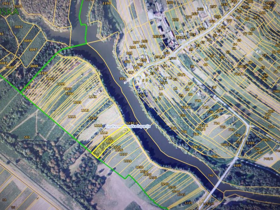 Prodaje se polovica kč. 1222, vlasnici 1/1, bila geodetska izmjera, čestica je i veća nego u katastru ( 3600) . Zemljište i objekti u parku prirode lonjsko polje neposredno uz Strug. Postoji objekat kojem kojem je potrebna obnova, i kamperica.. Nije dozvoljeno ništa novo gradit , već uredit postojeće .Izgrađen je wc i prostor za izradu tuša. Na većem dijelu iza objekata posađeno je 60 stabala hrasta lužnjaka i 60 jasena sada visine 1,5 do 2,5 m. Uživancija za ribolov i bijeg. Prodaje se zbog udaljenosti (Bjelovar) i nezainteresiranosti djece, ne zbog novaca tako da je cijena fiksna.