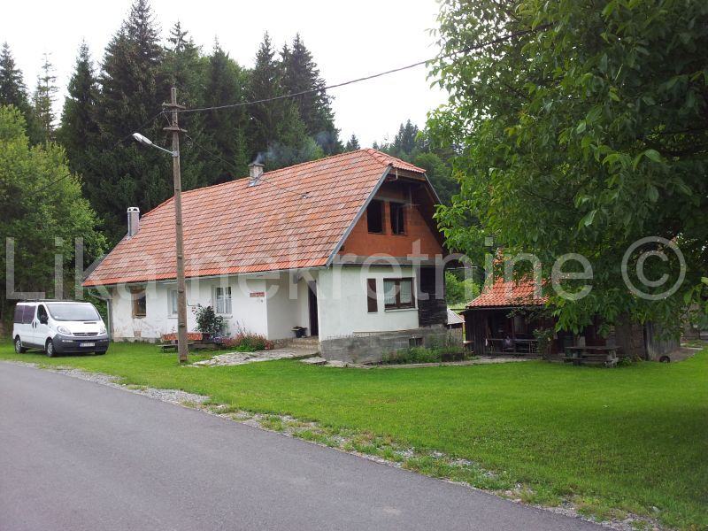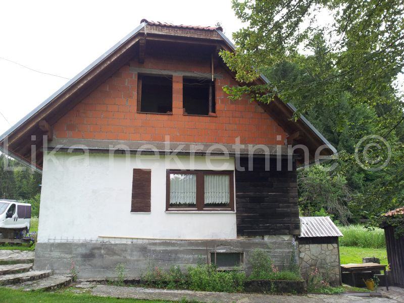 PLITVIČKI LJESKOVAC - obiteljska kuća dvojnica, prizemnica plus potkrovlje. Sastoji se od hodnika, kuhinje, blagovaone, dnevnog boravka, spavaće sobe, kupatila s wc-om. Potkrovlje neizređeno, površine 43 m2. Kuća ima podrum površine 13 m2. Gradski vodovod, struja trofazna. Stolarija drvena. Uz kuću se prodaje i 9.300 m2 zemlje. Udaljeno od izvora Prošćanskog jezera nekoliko stotina metara, izvor crne rijeke. U centru Nacionalnog parka. Vlasništvo 1/1, bez terata.