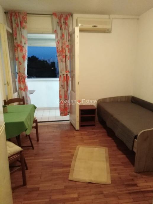 Agencija iznajmljuje garsonijeru smještenu na četvrtom katu stambene zgrade bez lifta. Sastoji se od dnevnog i spavaćeg dijela, kupatila i lođe.