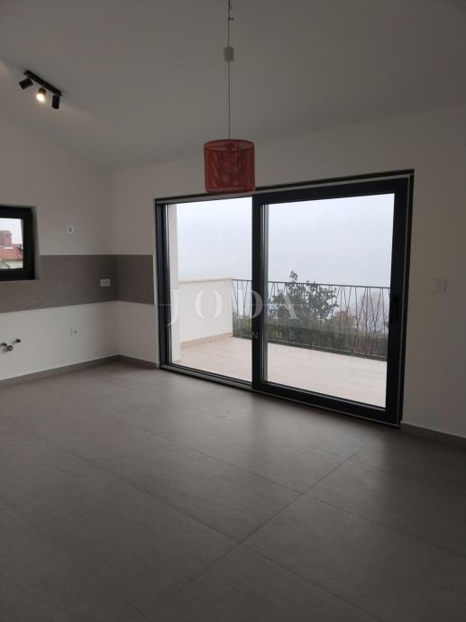 Na katu se nalazi kuhinja sa blagovaonom, dnevni boravak, toalet i velika terasa sa koje se pruža prekrasan pogled na more.