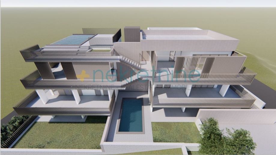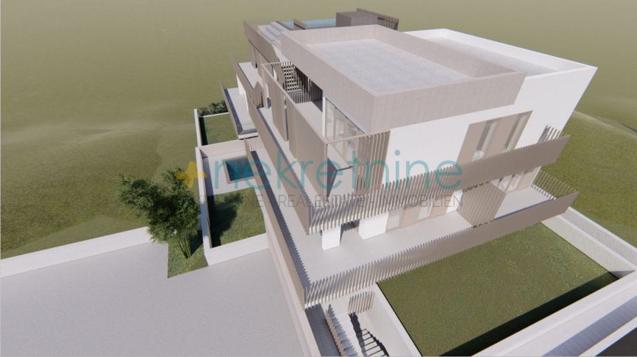 Ova moderna zgrada u završnoj fazi izgradnje obuhvaća četiri etaže (podrum + prizemlje + dva kata) s dodatnom krovnom terasom. Ukupno sadrži osam stambenih jedinica, a sve etaže povezane su liftom, od podruma do krova.