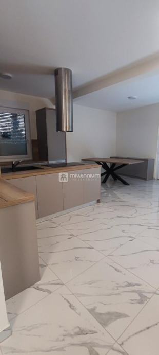 Na prodaju je prostrani stan u prizemlju zgrade s tri stana u Pobrima, ukupne površine 227.85m², od čega stan zauzima 102.61m² i sastoji se od ulaza/hodnika, dvije kupaonice, dvije spavaće sobe, kuhinje, blagovaonice, dnevnog boravka i natkrivene terase. Pripadajuće spremište, kućni vrt i dva parkirna mjesta su ukupne površine 125.24m².