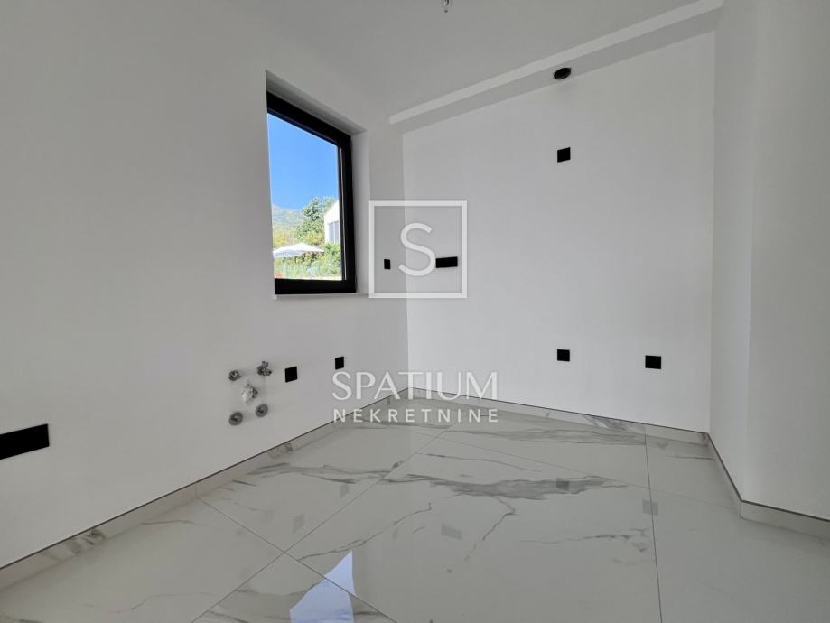 POBRI, u ponudu smo dobili kuću u nizu u novogradnji. Smještena na mirnoj lokaciji, sastoji se od prizemlja i kata. Ukupna stambena površina iznosi 157,58 m2 te istu sačinjavaju ulaz, odvojeni toalet, praonica, kuhinja, blagovaonica i dnevni boravak na prizemnoj razini. Unutarnje stubište vodi na kat gdje se nalaze hodnik, tri sobe, tri kupaonice, garderoba i lođa. Iz prizemlja i s kata se proteže pogled na more te je stan orijentiran prema suncu. Na okućnici od 65,76 m2 nalaze se terasa i hidromasažna kada te tri parkirna mjesta. Ukupna površina s koeficijentima iznosi 171,46 m2. Cijela nekretnina opremljena je podnim grijanjem s dizalicama topline na struju marke Vaillant, multi-split Daikin jedinicama klime zaduženima za grijanje i hlađenje prostora, vrhunskim troslojnim parketom te prvoklasnom keramikom i sanitarijama. Postavljena je priprema za solarnu elektranu. Nekretnina se nalazi u blizini Opatije, kao i Riječke zaobilaznice, dok su svi ostali sadržaji neophodni za život u blizini. Svojim konceptom, veličinom i prostranošću nudi mogućnosti, kako za život, tako i u svrhu investicije.