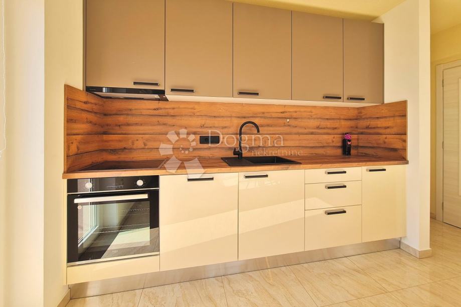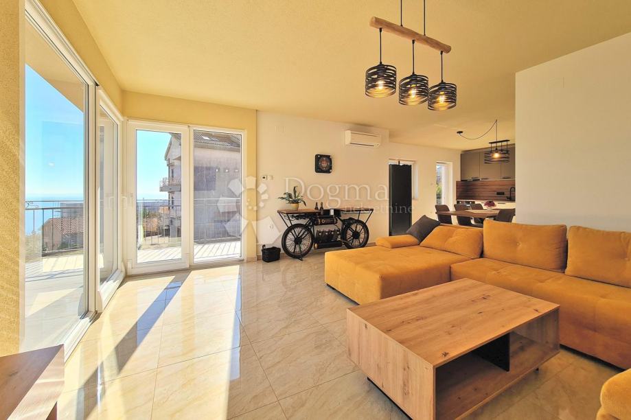Velike je kvadrature te se sastoji od dvije etaže. U donjem djelu stana je veliki open space koji se sastoji od dnevnog boravka, blagovaonice i kuhinje. Iz dnevnog boravka se izlazi na balkon s lijepim pogledom na Kvarner. Spavaća soba koja se nalazi na prvom katu je prostrana te ima izlazi na balkon, a na tom katu je i jedna kupaonica.
