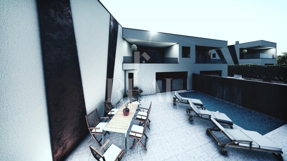 Nekretnina se gradi kvalitetno i biti će opremljena vrhunskom vanjskom stolarijom (klizne stijene aluminij, ostalo PVC), termo fasadom od 10 cm, podnim grijanjem na toplinsku pumpu, multi split sustavom za hlađenje i dodatno grijanje u svim sobama, itd.