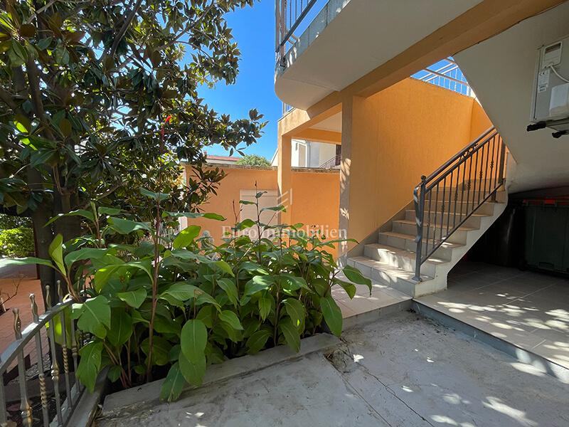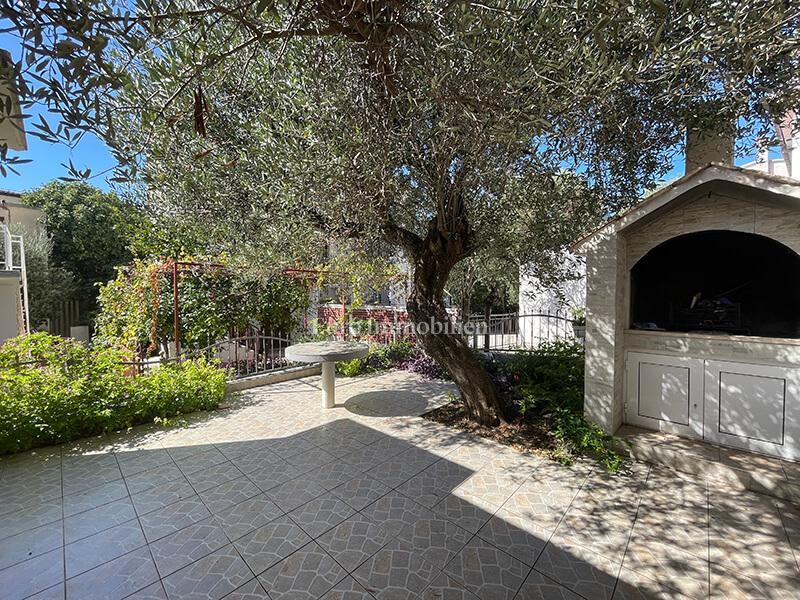 Prostrana okućnica je prepuna zelenila i mediteranskog bilja te kući daje poseban ugođaj, vlasnik je također dao postaviti i kameni komin. Važno je naglasiti da postoji opcija nadogradnje studio apartmana s još dvije dodatne etaže. U dvorištu ispred kuće se nalaze četiri parkirna mjesta.