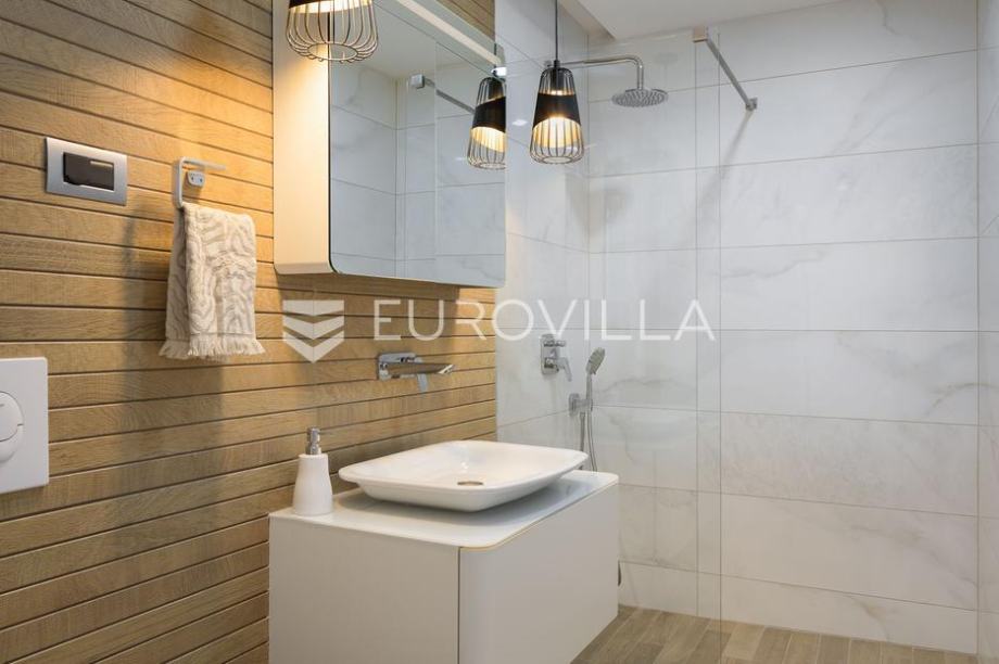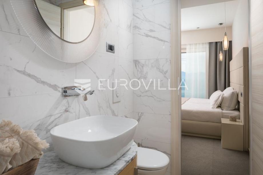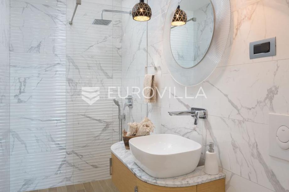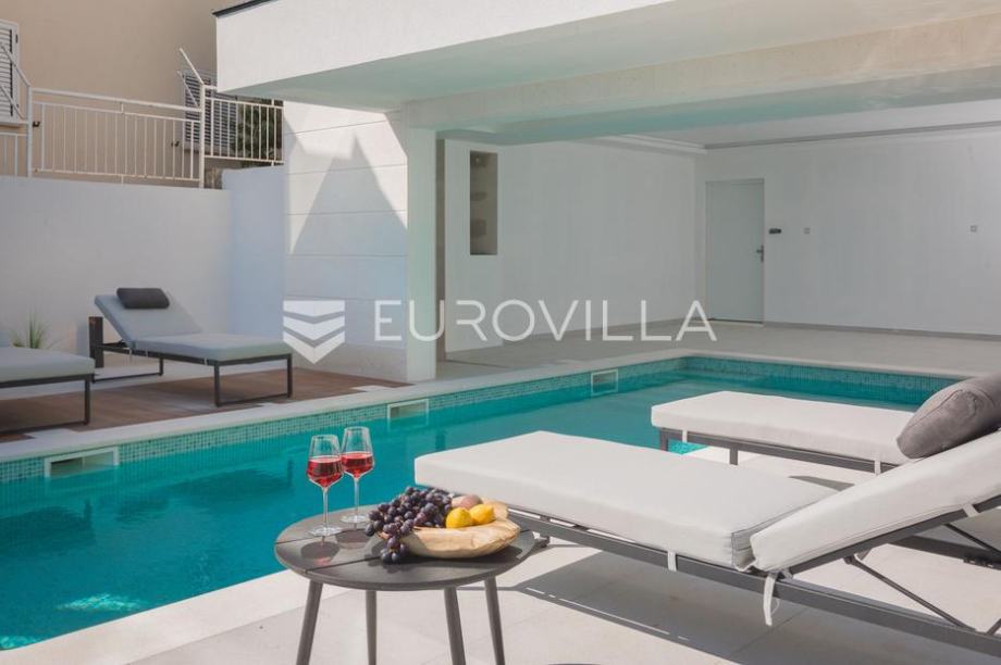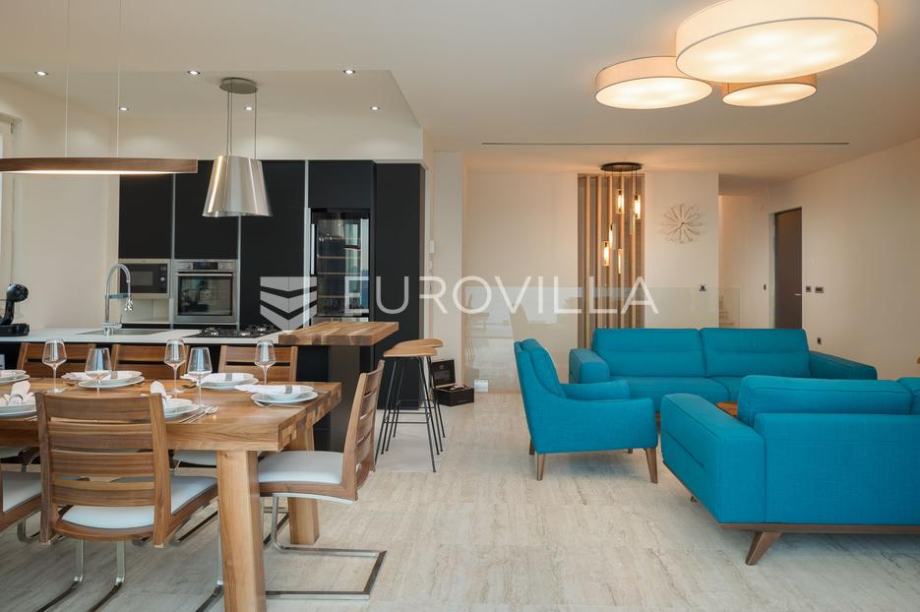 Luksuzna vila 80 m od mora - savršena oaza uz obaluOva izuzetna, moderno dizajnirana i prostrana vila, smještena je na atraktivnoj lokaciji, svega 80 metara od mora i poznatih plaža.Ukupna stambena površina vile je 300 m², a se prostire na parceli od 379 m² te nudi vrhunski komfor i...