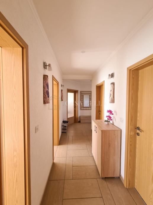 CASA BELLA iz ponude izdvaja stan na prvom katu ukupne površine 100 m². Stan se sastoji od tri spavaće sobe, dnevnog boravka, kuhinje, dvije kupaonice, i velikog i prostranog balkona.