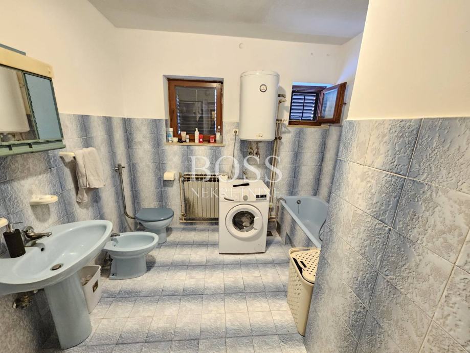 Podhum, samostojeća kuća P+1. U prizemlju su dvije garaže (35m2 i 25m2), kotlovnica, stan površine 85m2 koji je u roh-bau fazi. Stan na prvom katu površine cca 100m2 je odmah useljiv, lijepa veranda. Stan na katu može biti 3S+DB, a sastoji se od kuhinje, dnevnog boravka, dosta velikog hodnika, dvije velike sobe, toaleta, kupaone s toaletom, ostave i terase. Iznad stana je tavanski prostor. Etažno centralno grijanje na naftu (mogućnost i na drva), klima uređaj. Velika okućnica površine 1244m2. Lijepa i mirna lokacija, blizina vrtića, škole i svih ostalih sadržaja. Idealno za veću obitelj. Uporabna dozvola. Nekretnina vrijedna pažnje! Boss, kontakt: 091/379-1010 Dragan