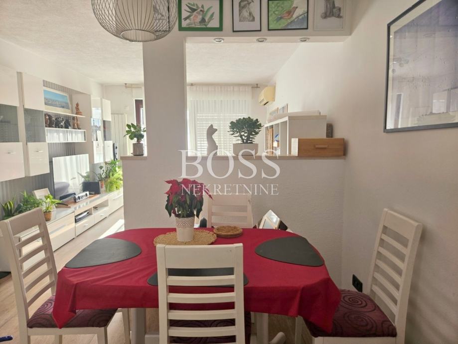 Podmurvice, samo u našoj ponudi! Visoko prizemlje, 3S+DB, sastoji se od dvije manje dječje i jedne veće sobe, kuhinje, blagovaone s dnevnim boravkom, kupaone s toaletom, zasebno toaleta, lođe s pogledom na more. Pripadajuća prostorija stana je drvarnica. Grijanje je etažno centralno na plin i dva klima uređaja, električni podizači roleta u dnevnom boravku i jednoj sobi. Odlična lokacija, blizina svih bitnih sadržaja. Boss, kontakt: 098/537-907 Jasna
