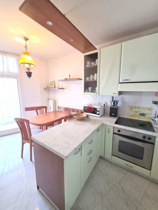 PODMURVICE, prodajemo stan površine 75 m2, dvosoban s dnevnim boravkom i lođom na jugu s panoramskim pogledom na more. Stan je djelomično renoviran, dobro održavan, prodaje se opremljen. vrlo funkcionalnog rasporeda prostorija. Useljiv je odmah po isplati. Odlična lokacija zbog blizine svih potrebnih sadržaja.