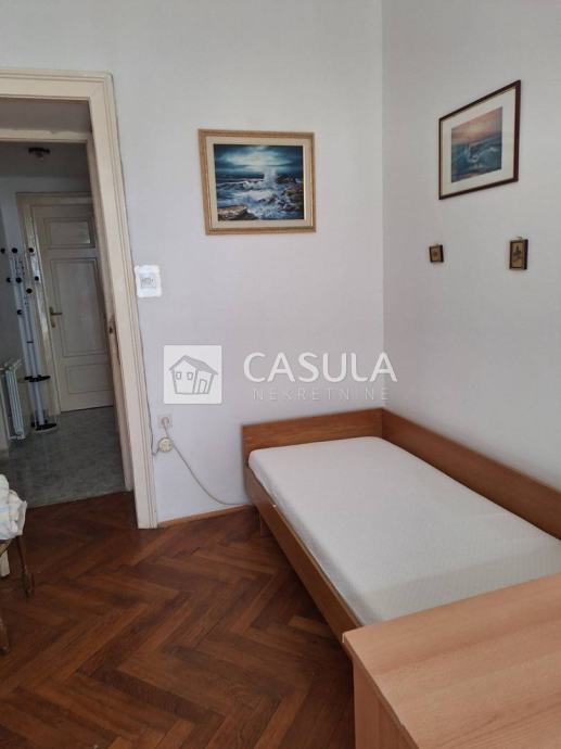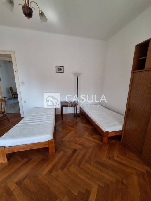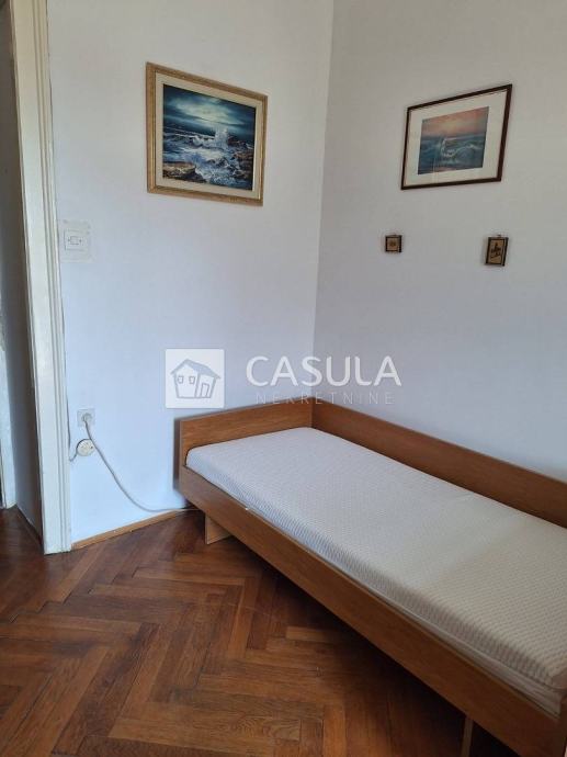 RIJEKA, PODMURVICE, NAJAM stana u blizini medicinskog i tehničkog fakulteta Stan na 1. katu lijepe stare vile potpuno obnovljene. Prije šest mjeseci napravljena je fasada i promijenjena je sva stolarija. Stan se sastoji od tri velike sobe, kuhinje, blagovaone, kupaone, wc-a te balkona s pogledom na more. U jednoj sobi su dva kreveta a u druge dvije po jedan.Grijanje -centralno etažno na gradski plin i Daikin klimu s inverterom. Stan ima poseban ulaz. U sklopu okućnice nalazi se konoba. U stanu su visoki stropovi. Mirna i sunčana lokacija okružrna zelenilom. Tlocrt u prilogu. Idealno za 3 ili 4 studenta ili radnika.
