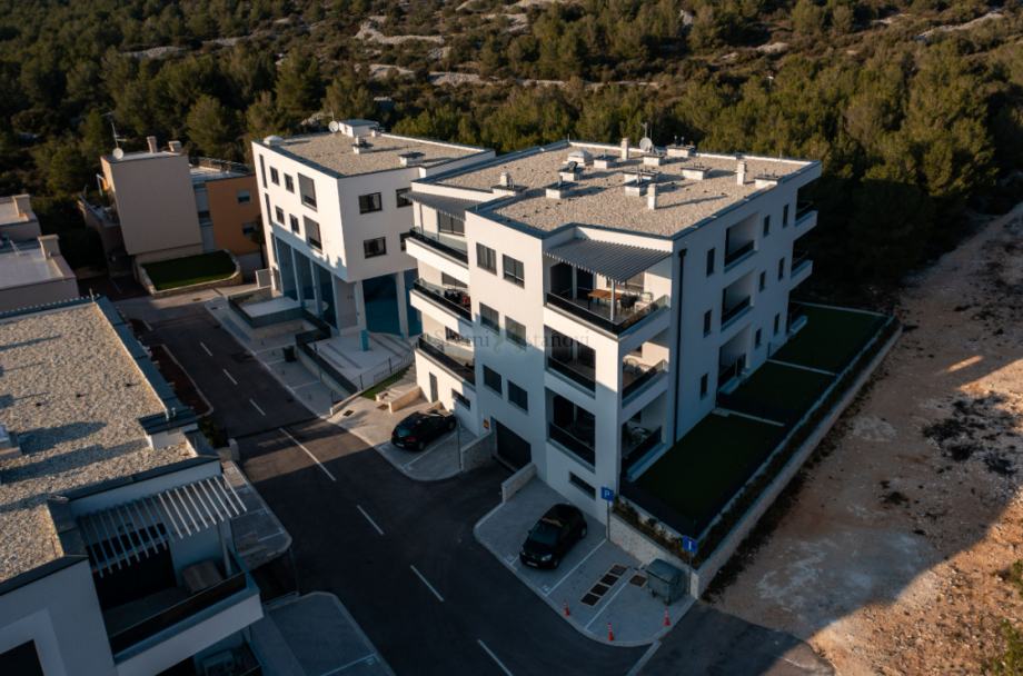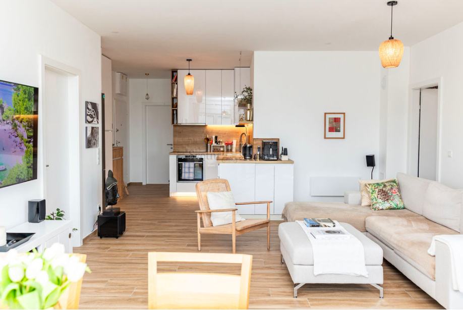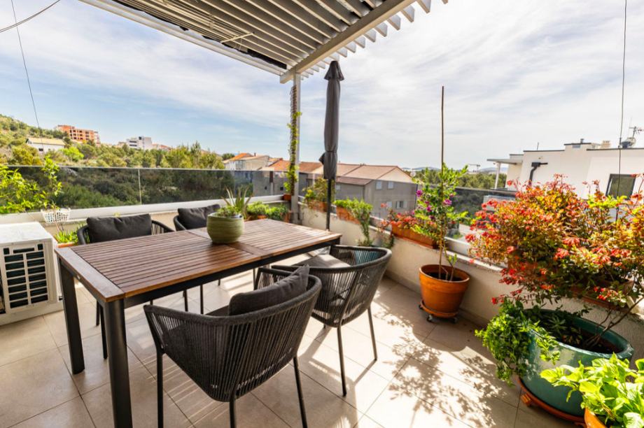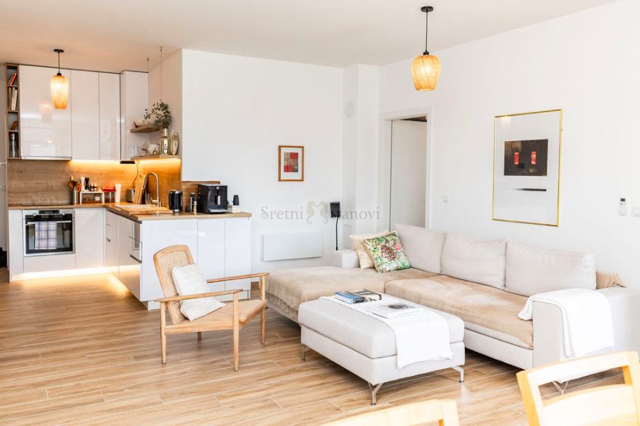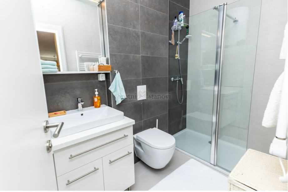 A beautiful apartment for sale in an excellent location in Podsolarski, close to all important facilities for life, and not far from the sea. The apartment is located in a well-built building, equipped according to the latest quality standards, and the building is located in a beautifully decorated complex that is well maintained. The apartment itself consists of an entrance area, a kitchen with a dining room and a living room, three rooms (one has been converted into an office and the other into a smaller guest room), two bathrooms (the master bedroom has its own bathroom), storage in the apartment and a beautiful, large terraces. The apartment also has a storage room on the ground floor of the building, and one parking space in the garage. The apartment itself is equipped with quality furniture that remains in the apartment. The apartment is ideal for everyday life or tourist rental. The ownership papers are in order, with no rights of third parties and no mortgage. Price on request.
