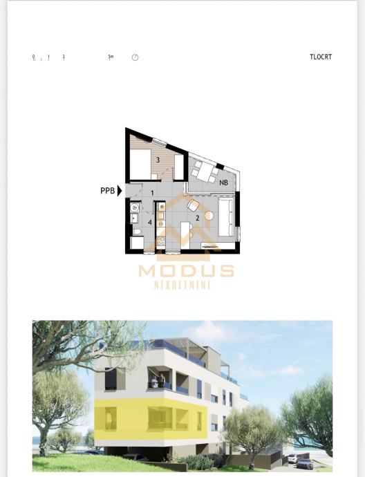 Poslovni prostor (Apartman) položen je na prvom katu objekta.