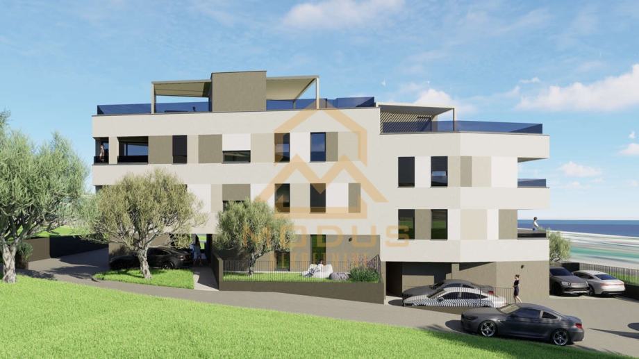 Sastoji se od unutarnjeg prostora veličine 26.57 m2 + terasa 10.08 m2 + lođa 5.61 m + vrt 18.41 m2 + Garažno + parking mjesto.
