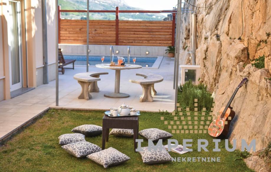 Nudimo vam priliku da iznajmite predivnu kuću u Podstrani koja pruža vrhunski životni komfor. Ova prostrana kuća od 490 m² proteže se na tri etaže i idealna je za obitelj ili grupu koja traži luksuz i privatnost.