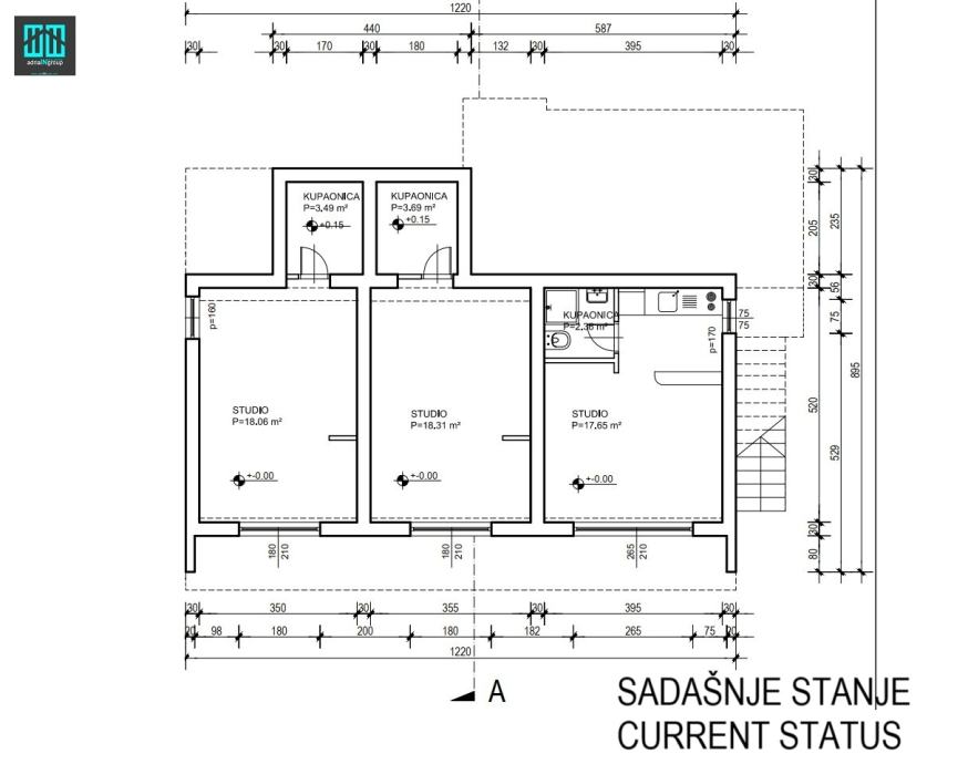 - Prizemlje: 3 potpuno opremljena studio apartmana