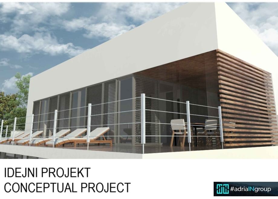 Vlasnik posjeduje IDEJNI PROJEKT za potpunu rekonstrukciju objekta u modernu luksuznu vilu površine cca 275 m² (Prizemlje + 2 kata), koja uključuje: 4 spavaće sobe, više luksuznih kupaonica, prostrani dnevni boravak s pogledom na more, teretanu i saunu, privatni bazen i sunčalište