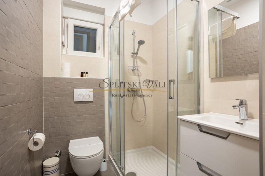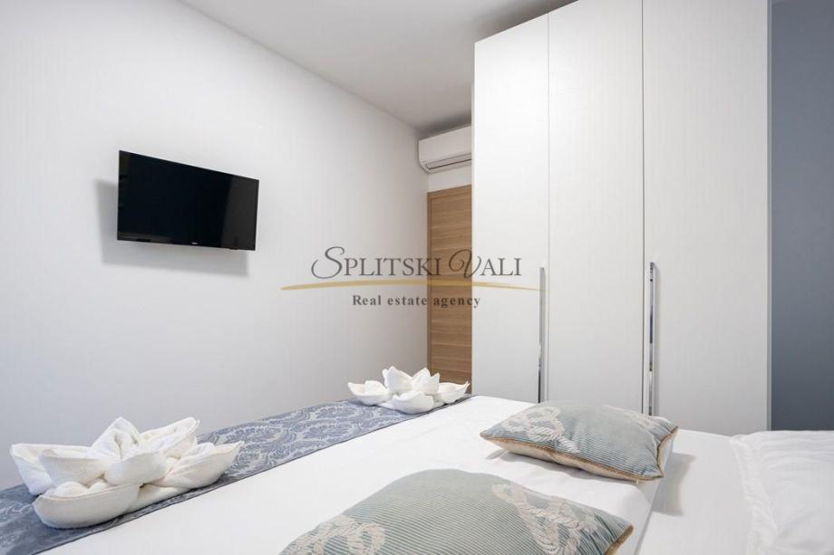Udaljen je 12km od Splita i nalazi se u neposrednoj blizini plaže i restorana.
