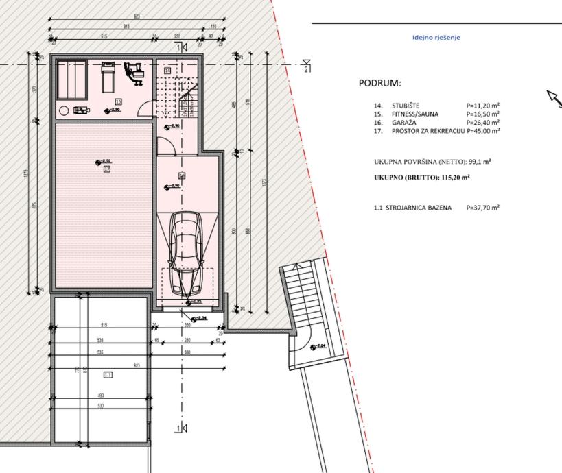 U podrumu vile je prostor za rekreaciju, fitness/sauna i garaža.