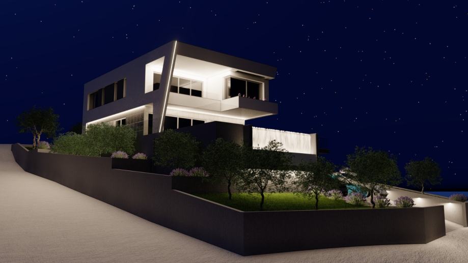 Na zemljištu od 600 m2, a stambeni dio vile iznosi 320 m2, položen kroz tri etaže.