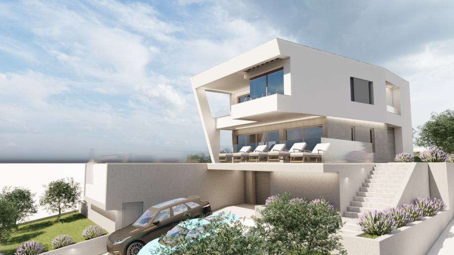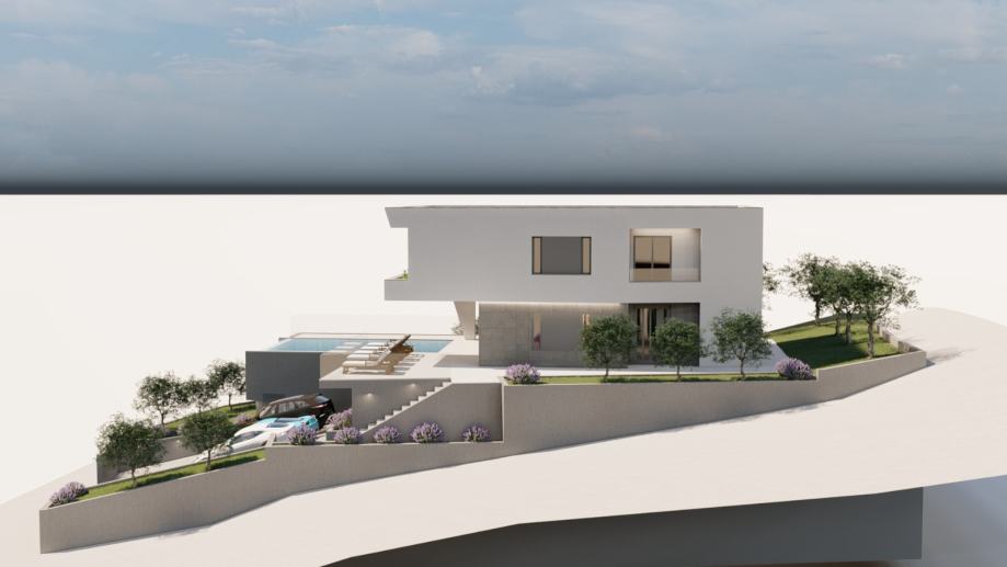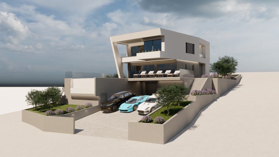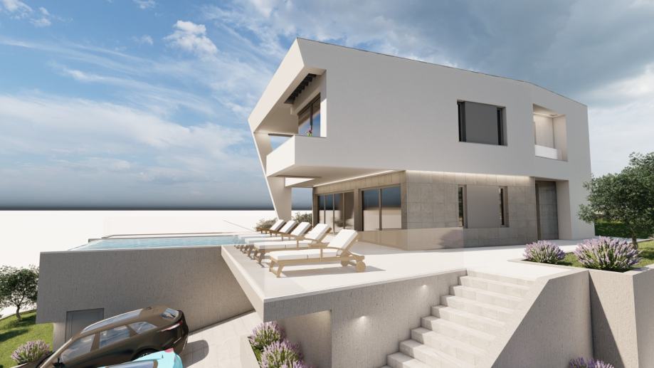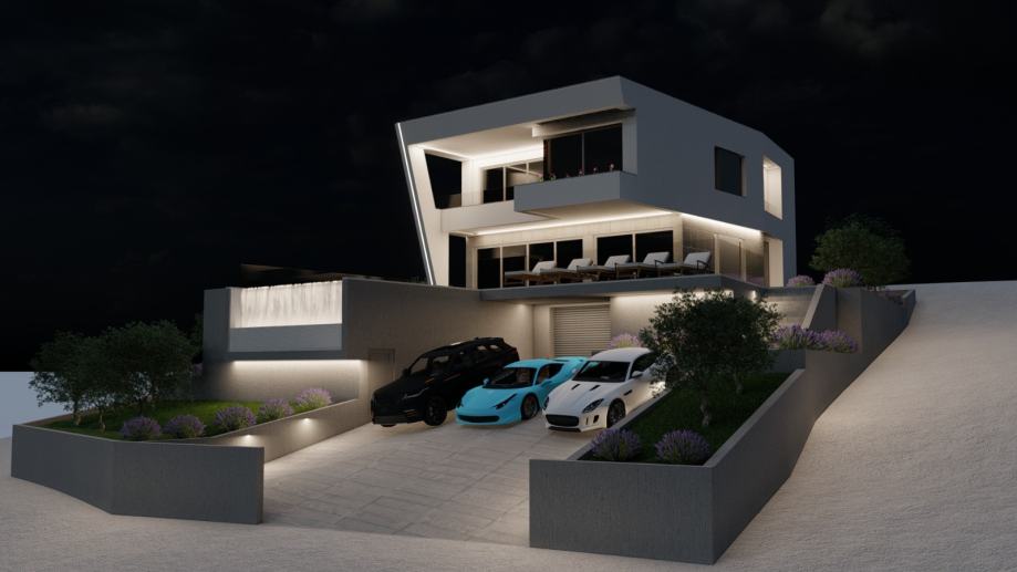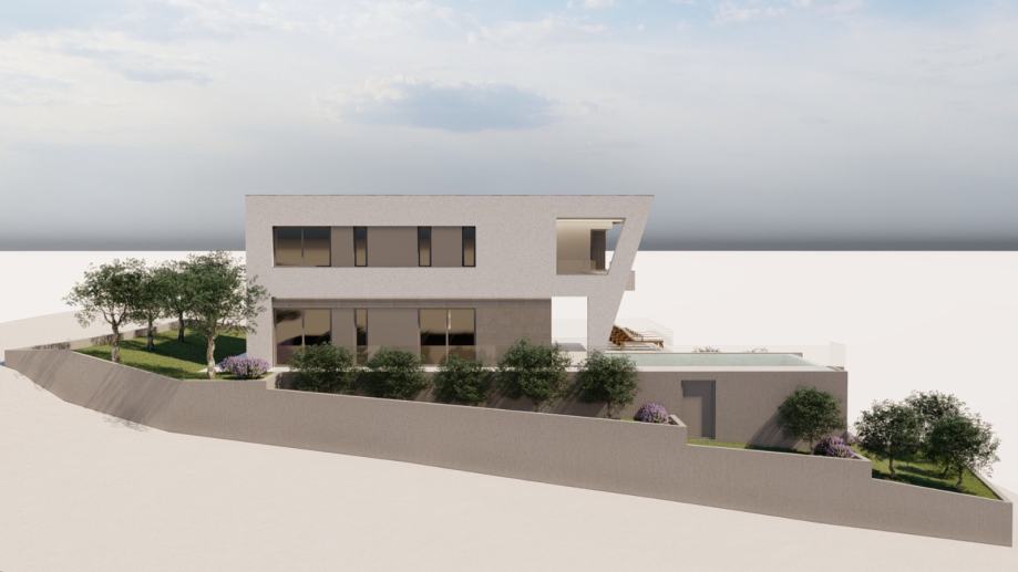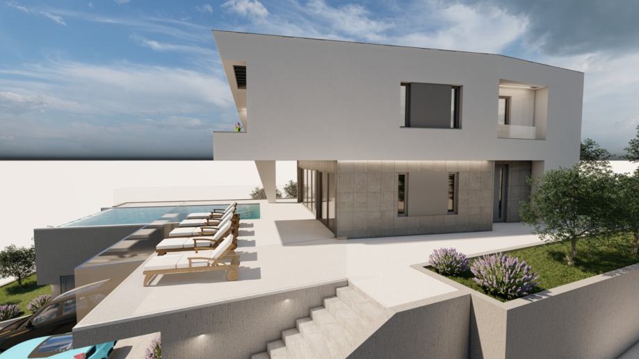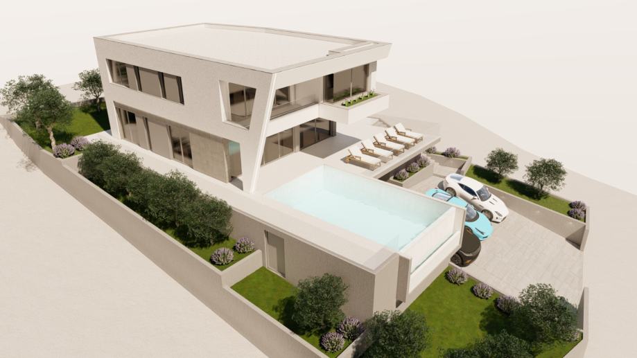 Velika, uređena okućnica s bazenom i parkingom, zaokružuje izgled vile.