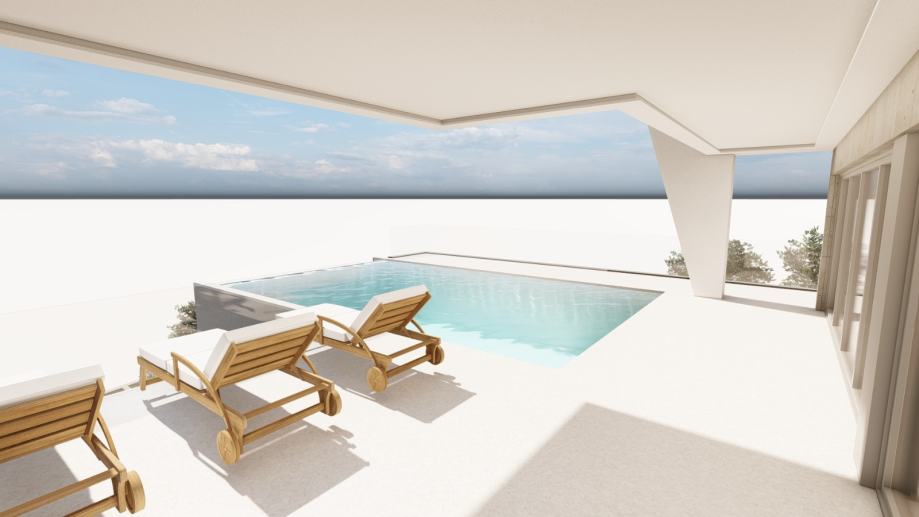 We mediate the sale of an urban villa under construction, with a swimming pool and a view of the sea.