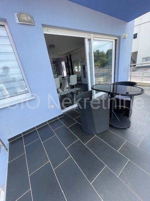Na zadnjem katu je terasa cijelom širinom kuće, s otvorenim pogledom na more i okolicu.