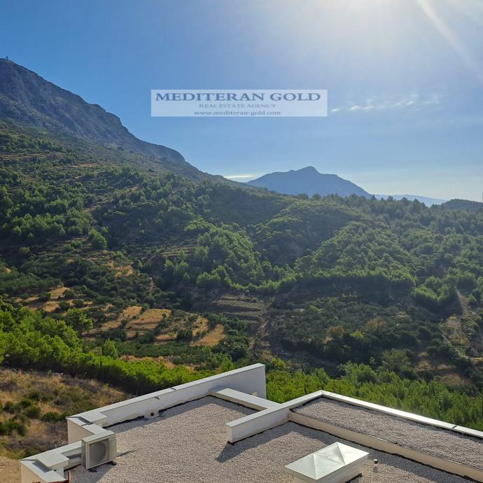 Podstrana, luksuzna villa modernog dizajna sa bazenom, u izgradnji. Villa će biti izgrađena najsuvremenijim materijalima, a karekterizira je panoramski pogled na more iz svih prostorija, te atraktivni bazen sa svim pratećim sadržajima. Projektirana je na dvije etaže i nadgrađa, ukupno 252,93m2, na zemljištu od 656m2. Sastoji se od četiri sobe, četiri kupaonice i wc-a. Na prvoj etaži je kuhinja, blagovaonica, dnevni boravak, sprema i WC, tehnička soba, vanjski wc, ljetna kuhinja, lounge i bazen površine 28,00 m2. Na drugoj etaži su predviđene četiri spavaće sobe s pripadajućim kupaonicama, praonica, predprostor i hodnik. Krovna terasa je prohodna, odnosno na njoj je smještena terasa od 67 m2. Na nivou prizemlja će biti vanjski parking za više automobila. Predviđeni završetak izgradnje 2026 g. Prekrasan pogled, od mora udaljeno 600m. Idealno za život ili kao investicija. Agencija naplaćuje proviziju.