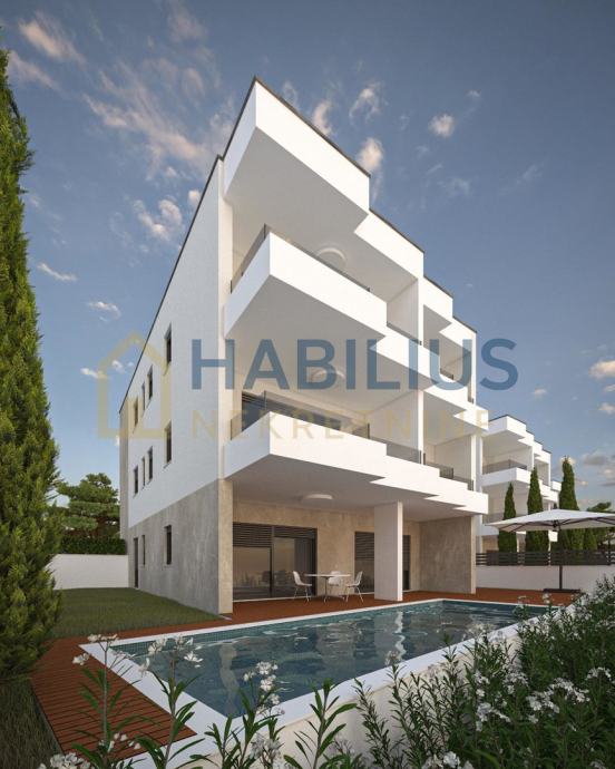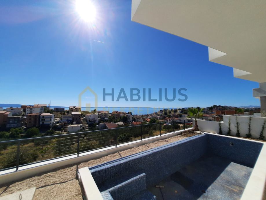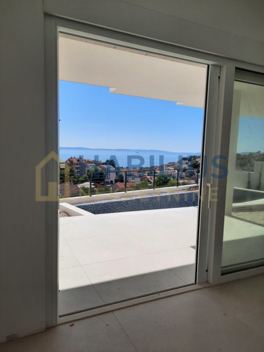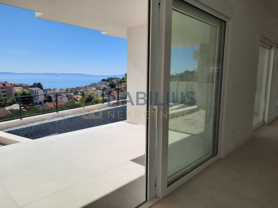 Podstrana, novogradnja, lux stan s bazenom, 2 park.mj, pogled na more (prodaja)