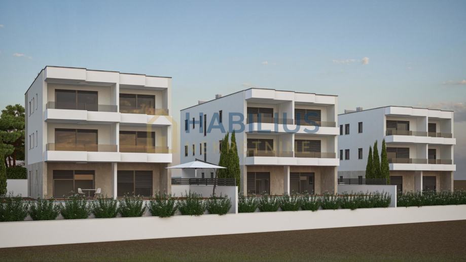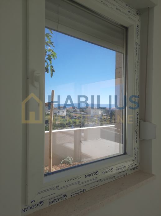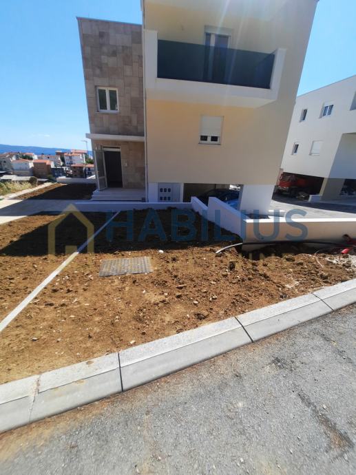 Lux trosobni stan s lođom i terasom cca 100m2, u prizemlju manje stambene zgrade s otvorenim pogledom na more, prozračan i pun svjetla, orijentacije i-j-z. Sastoji se od 3 spavaće sobe, kuhinje+blagovaonice+dnevnog boravka otvorenog prostora, hodnika, 2 kupatila s podnim grijanjem, velike terase s pogledom na more, bazenom i velikim vrtom. Za stanovanje ili turizam. Ima pripadajuća 2 park.mjesta. U blizini trgovina, bus, restorani i sl.