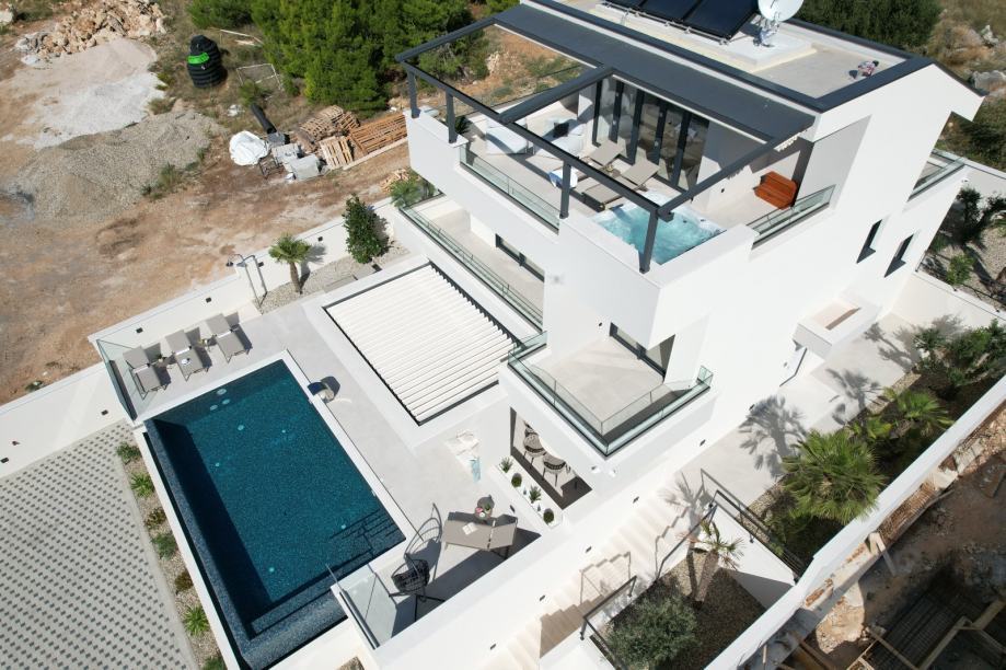Posredujemo u prodaji luksuzno, kompletno opremljene vile sa bazenom koja odiše šarmom i luksuzom modernog dizajna. Vila je položena cca 800m od mora, na uzvisini, sa koje se pruža otvoren panoramski pogled na more i otoke, te čarobne zalaske sunca. Vila se proteže na 4 etaže.