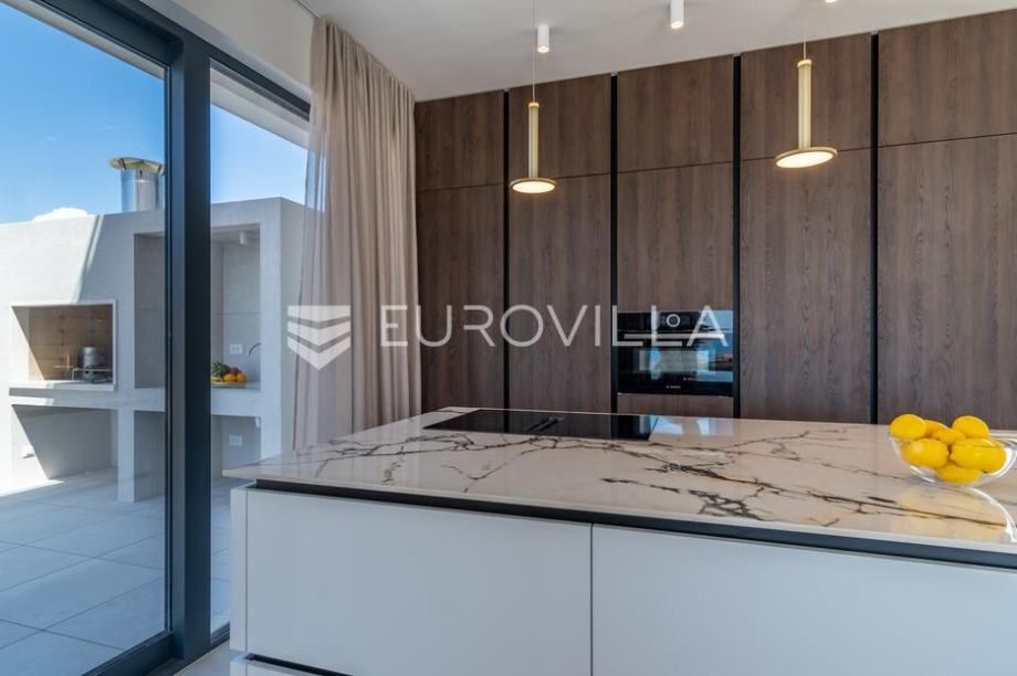 Podstrana, a contemporary holiday villa with an outdoor pool and open sea views. It is located on a plot of 812 square meters, is divided into three above-ground floors, and has 285 square meters of living space.The ground floor consists of a fully equipped modern kitchen with dining area, living...