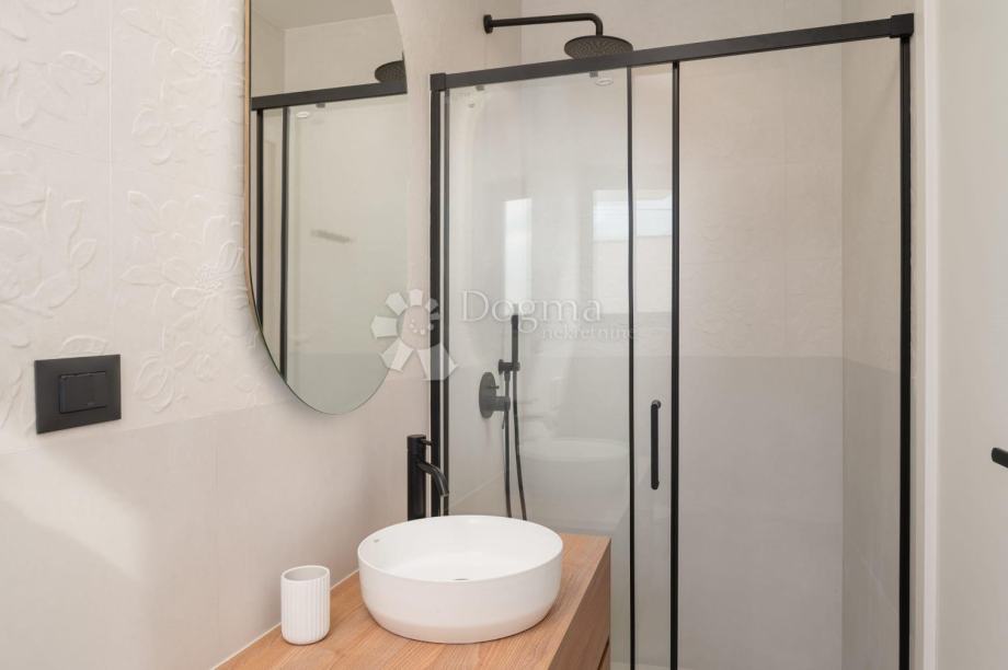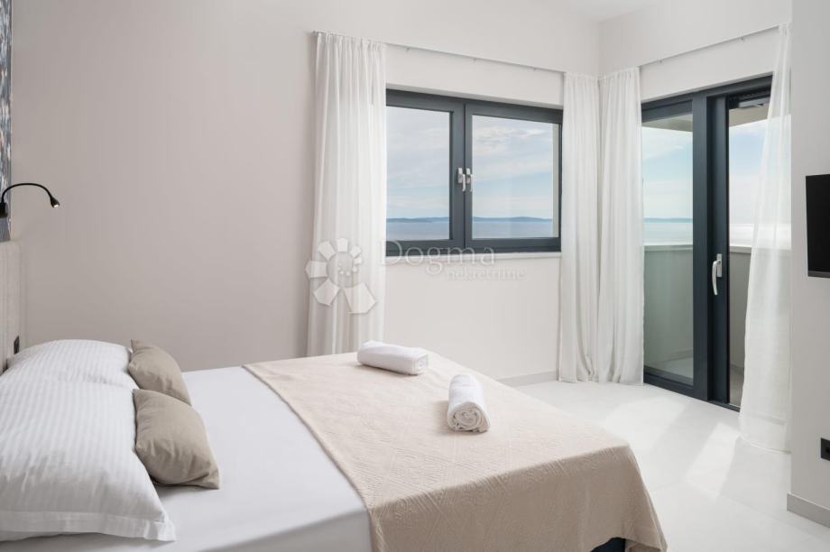 Gornja etaža se sastoji od 3 spavaće sobe s en suit kupaonicama i prostrane lođe s nesmetanim pogledom na more.