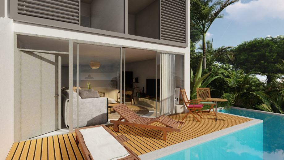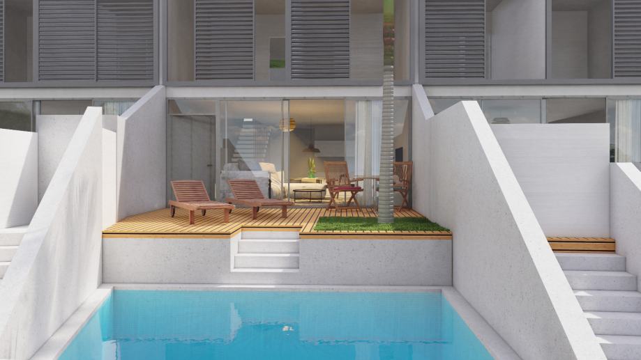 Svaka jedinica je moderno projektirana sa prostranim vanjskim terasom i bazenom. Savršen spoj modernog dizajna i visokih standarda, uklapa se uz lokaciju koja je smještena u mirnijem dijelu Donje Podstrane.