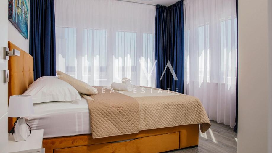 Iznajmljuje se luksuzna kuća s bazenom i Jacuzzijem u Podstrani, blizu Splita. Kuća je moderno uređena i potpuno opremljena i proteže se na 3 etaže. U prizemlju se nalazi prostrani dnevni boravak, kuhinja i gostinjski WC. Iz dnevnog boravka se izlazi na prostranu terasu s bazenom i roštiljem. Na prvom katu se nalaze 3 spavaće sobe, kupaonica i velika teresa s Jacuzzijem. Na zadnjoj etaži se nalazi master spavaća soba s vlastitom kupaonicom i velikom terasom s koje se pruža lijepi pogled na more.