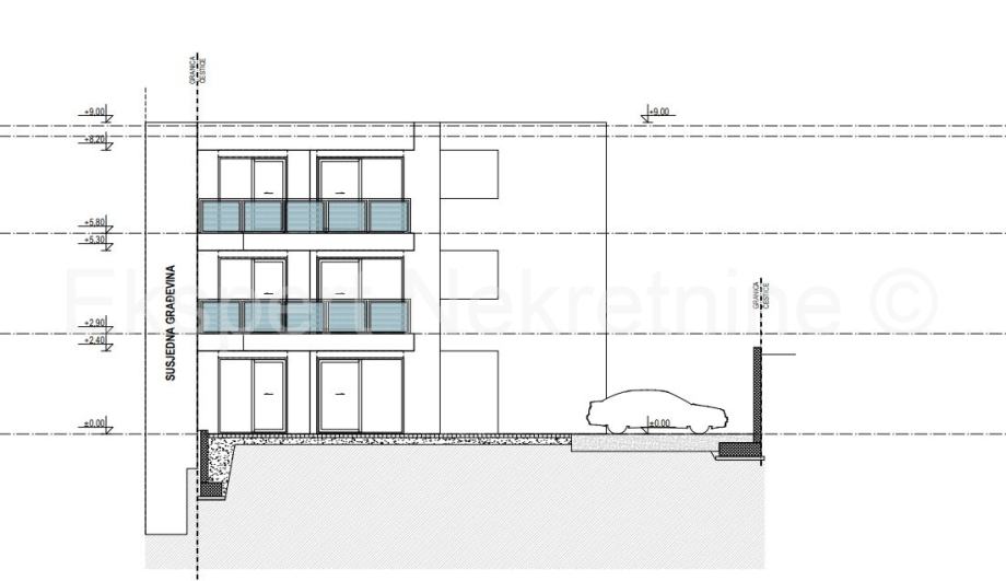 Zgrada se nalazi u mirnom okruženju i sastoji se od samo tri stana. U blizini je mora i svih sadržaja (škola,vrtići, crkva, restorani, kafići,ljekarne, šetnice, teretane itd...).